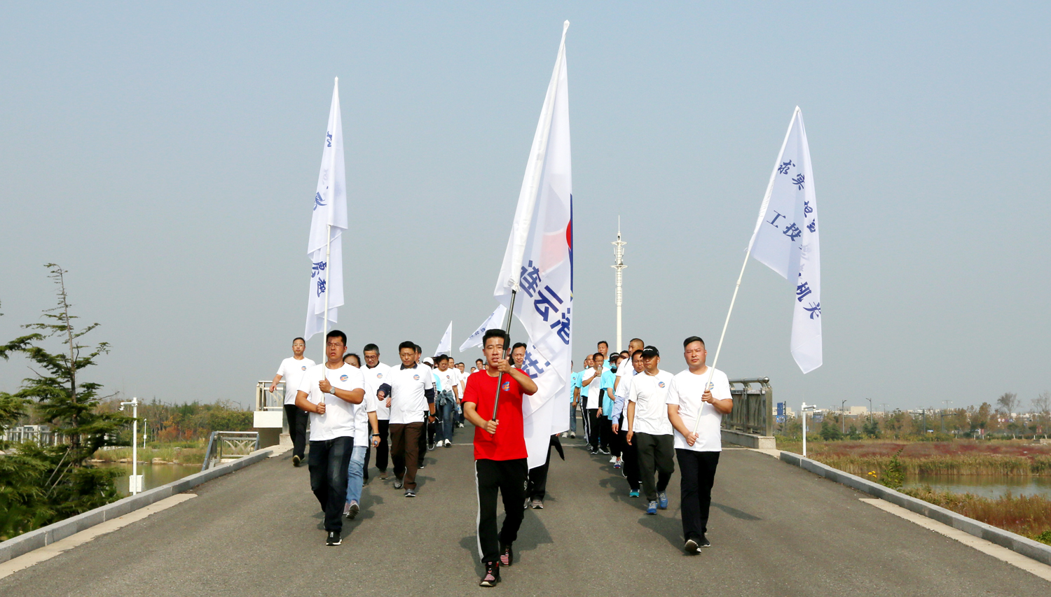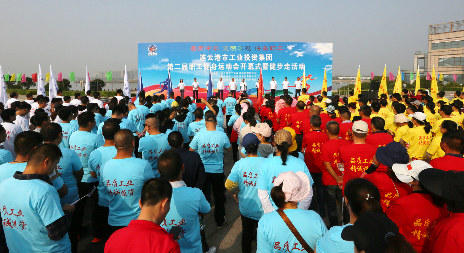 金秋十月,丹桂飄香。10月24日上午,美麗的徐圩新區(qū)云湖廣場彩旗招展,歌聲飛揚,為慶祝中華人民共和國成立70周年,豐富職工業(yè)余文化生活,由集團公司、集團公司工會主辦,徐圩投資公司承辦的集團第二屆職工健身運動會開幕式暨健步走活動在這里隆重舉行。集團公司黨委書記、董事長楊龍宣布第二屆職工健身運動會開幕,并為健步走活動發(fā)令。總經(jīng)理胡建明致開幕詞。工會主席劉承志主持開幕式。 本次運動會圍繞“美麗中華·文明工投·快樂職工”活動主題,來自全公司各條戰(zhàn)線的17支代表隊1200多人次的運動員參加拔河、跳繩、乒乓球、健步走等項目的角逐。他們以勇奪第一、超越自我的競賽精神和攜手奮進、合力拼搏的競賽風(fēng)尚,充分展示工投人追求卓越、共建和諧的優(yōu)秀精神風(fēng)貌。本次運動會將對個人單項比賽前六名、集體項目比賽前三名及道德風(fēng)尚獎獲得者給予表彰。