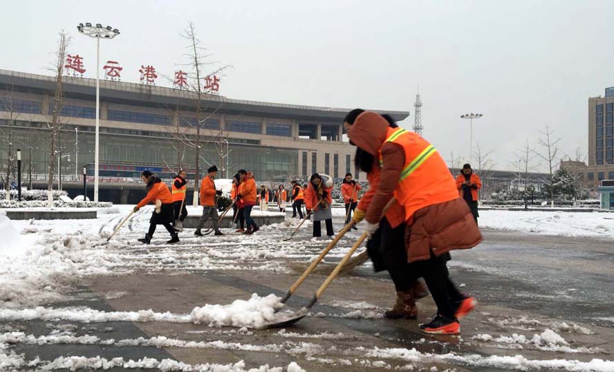 14日,久違的一場大雪飄然而至,將美麗的港城裝點的銀裝素裹,分外妖嬈,但也給交通和出行帶來諸多不便。對此,集團公司積極履行社會責任,連夜部署安排,發動全公司各單位積極行動,組織廣大干部職工參與公共區域冰雪清除行動,清積雪、暢通道、獻愛心,為打造“干凈、方便、順暢”連云港作出積極貢獻。