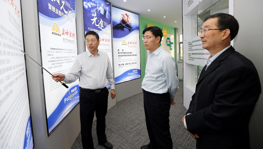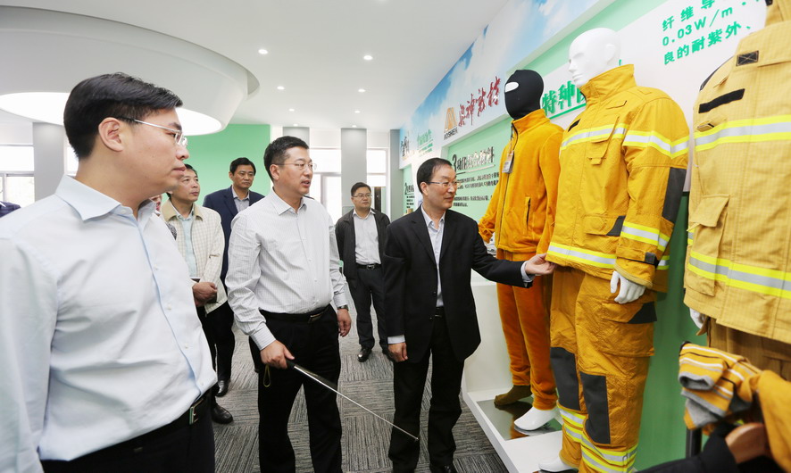 曹衛東一行先后參觀了奧神新材料公司展廳和聚酰亞胺高性能纖維生產車間,并聽取了相關情況匯報,對奧神新材料公司的研發能力和高性能纖維產業發展成效給予了充分肯定。曹衛東指出,奧神新材料公司成立五年來,以創新驅動轉型為動力,致力推進企業技術創新、產品創新和市場創新,取得了令人矚目的成績?!笆濉逼陂g,作為高性能纖維自主研發制造企業、聚酰亞胺纖維干法紡絲生產核心技術的掌握者,奧神新材料公司要進一步突出高、新、優特色,切實踐行創新發展理念,加強自主知識產權保護,在聚酰亞胺纖維研發及生產方面著力突破新技術、提升創新力,推動產業高端化、規?;⒓刍l展,打造國內一流的新材料產業基地,為推動連云港市纖維新材料產業發展做出新的貢獻。