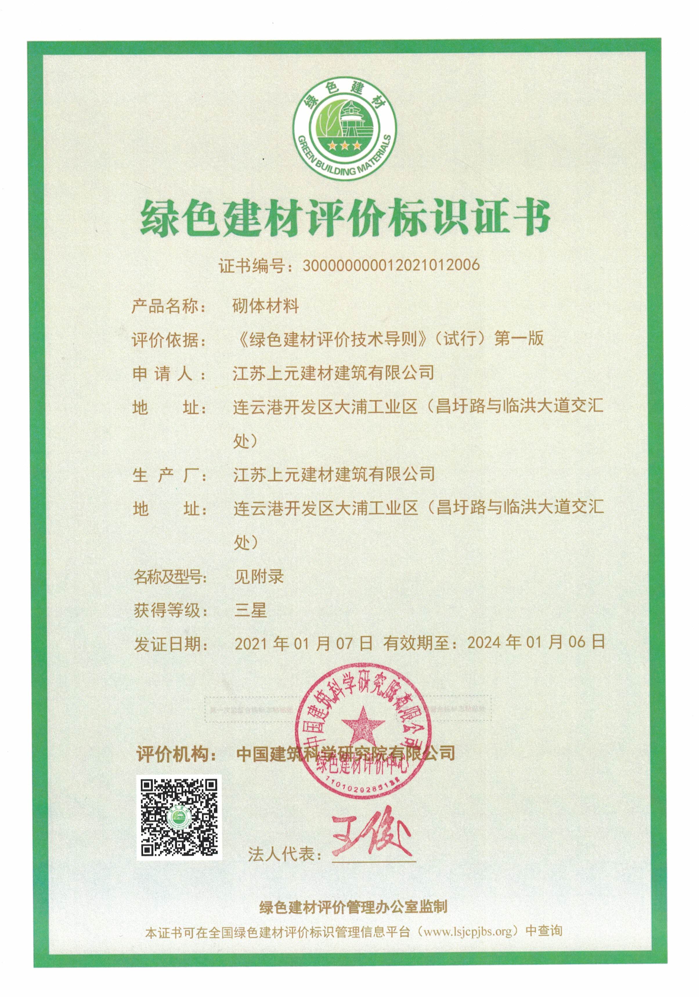 近日,房地產上元建材建筑公司成功獲得國家三星級綠色建材評價標識證書,為連云港市首家獲得該項榮譽的蒸壓加氣混凝土板(砌塊)類企業。