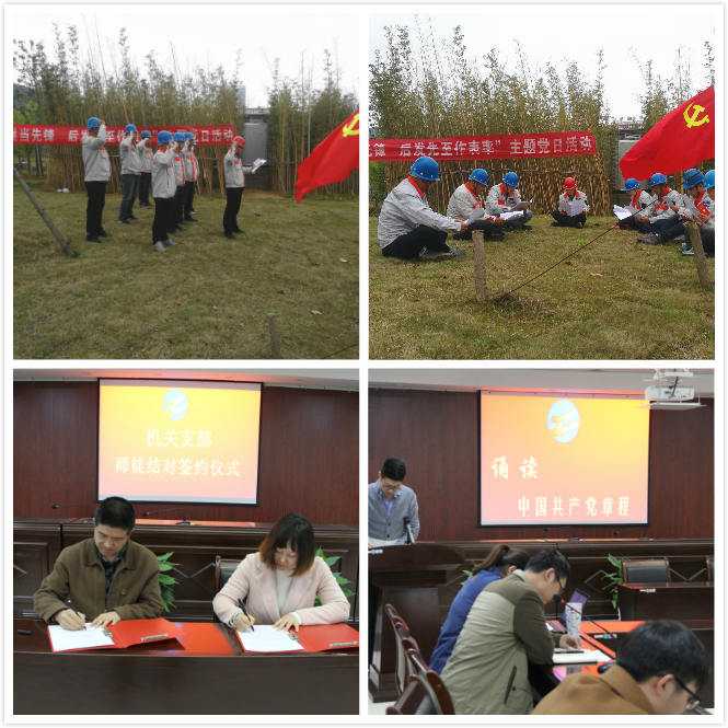 主題黨日+師徒結對。為了幫助新任職員工能夠快速的勝任工作,機關支部為6名職工進行了師徒結對。青年職工身上創新的能力、工作的激情感染著老師傅;老師傅更是把自己的一切毫無保留地傳授給徒弟,帶徒弟的過程也是在不斷完善自己,取人之長,補己之短。這是一個師徒相長的過程,師徒在活動中,互相學習,互相幫助,努力提高自身素質,共同獲得了提高。