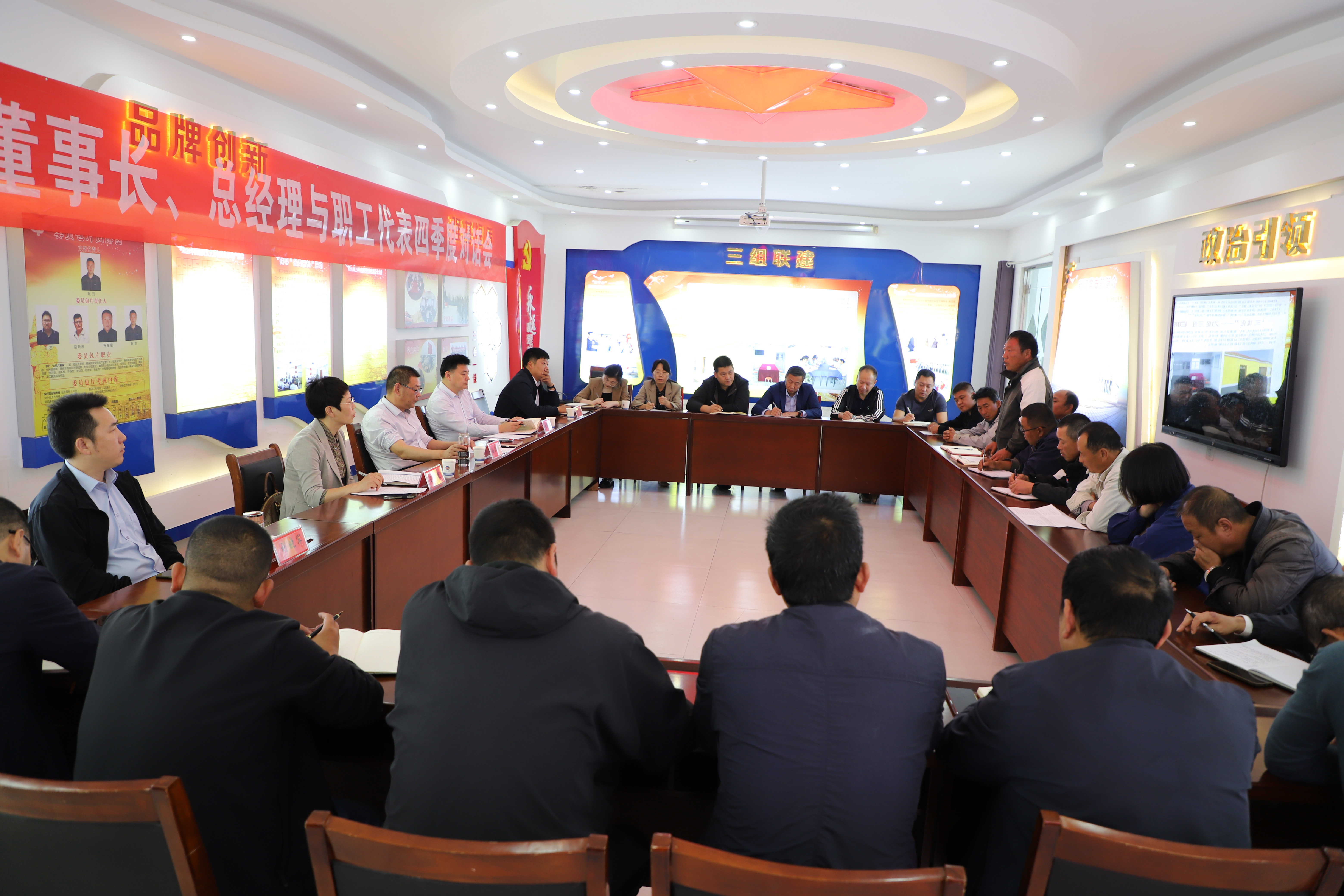 2023年10月19日下午,產(chǎn)業(yè)工人代表與公司董事長、總經(jīng)理齊聚一堂,就生產(chǎn)生活中遇到的問題提建議、獻(xiàn)良策。