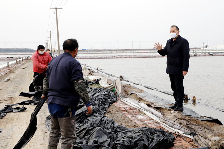 李國文首先來到日曬制鹽公司生產(chǎn)灘頭,現(xiàn)場察看復(fù)工復(fù)產(chǎn)情況。徒步灘頭,有的在補塑布、有的在修整廩基、有的在更換塑布,每個班組都在搶抓時間準(zhǔn)備春扒工作。隨后李國文先后前往西旺養(yǎng)殖池塘、明威田頭、宵洋物流碼頭,每到一處都詳細詢問職工口罩、消毒酒精等防護物資夠不夠用,有沒有外地回來的員工,并叮囑員工少接觸外地回來人員,錯開上下班時間,外出要帶口罩,保護好自己才能更好的為企業(yè)創(chuàng)造效益。