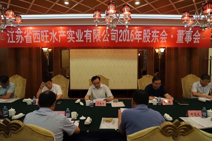 8月24日,江蘇省西旺水產實業公司2016年股東會、董事會在墟溝召開,省沿海開發集團總經理丁建奇、副總經理周金陽,連云港市工業投資集團董事長楊龍、總會計師匡友本等股東代表、董事代表出席了會議。