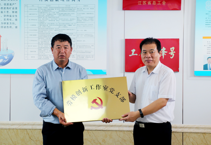 在日曬制鹽公司新河分公司的安樹林勞模創新工作室現場,丁書記一行觀看了技術創新成果展示專題片,還為工作室的“勞模創新工作室黨支部”進行了授牌。