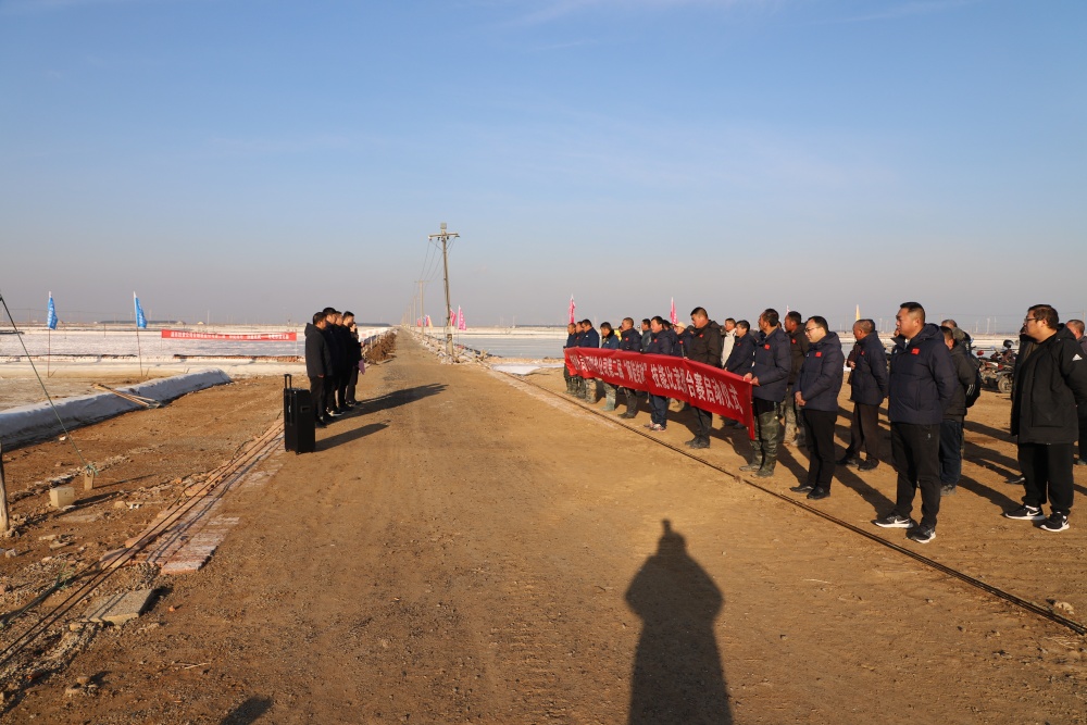 在新河制鹽分公司5班灘頭,總經理吳衛平作動員講話,裁判長沈玉波宣誓董事長孫政權宣布“‘薪火灌筑 匠星西傳’師徒結對擂臺賽”正式開始!