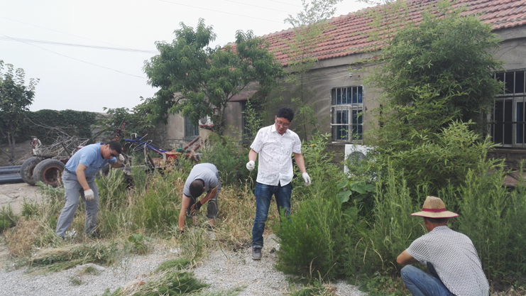 大家用手拔,用鐮刀砍,雖然天氣炎熱,但絲毫阻擋不了黨員們的勞動熱情。