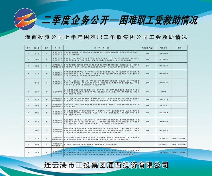 1、人員變動(dòng)情況:莊忠明同志任埒南制鹽分公司黨支部副書記,免去埒南制鹽分公司副經(jīng)理職務(wù);葛高平同志任連云港宵洋物流公司黨支部書記兼工會(huì)主席;唐建軍同志任江蘇省西旺水產(chǎn)實(shí)業(yè)有限公司副總經(jīng)理;于同剛同志任連云港市灌西實(shí)業(yè)公司制鹽分公司經(jīng)理;唐廣付同志任新河制鹽分公司副經(jīng)理,免去柴門制鹽分公司工會(huì)主席職務(wù);王忠良同志任生產(chǎn)服務(wù)公司安全員。