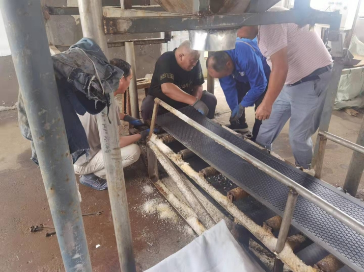 此次檢查主要針對現場的原鹽運輸情況以及電路相關的安全事項進行排查,力求安全生產,保障工人的生產安全工作。經排查,原鹽運輸皮帶機的履帶破損,部分軸承過于腐銹,針對這些安全隱患,宵洋物流及時組織修理人員對相關設備進行更換和整修,保證生產工作的正常運營。(宵洋物流黨支部)