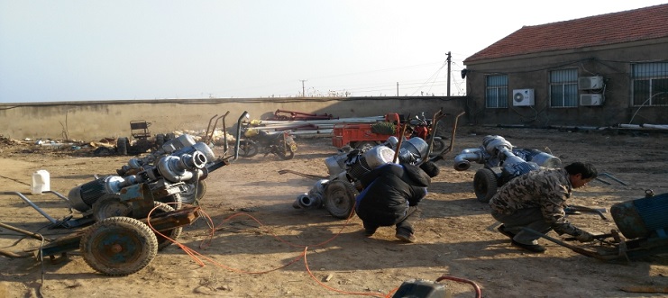 為確保一月底前完成扒鹽設備維護保養工作,日前,機械設備服務中心召開班組骨干會議,進一步明確維修任務,細化、量化到人頭,注重維修安全,向目標沖刺。該中心機修人員能不畏嚴寒,搶時間維修保養扒鹽設備,目前10臺帶鹵扒鹽唐30、6臺破碴唐30、10臺扒鹽大架已全部維護結束。20臺鹽泵已進入上漆保養階段。(下圖為設備上漆保養)