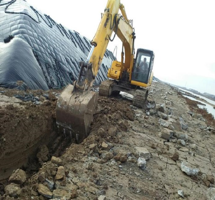 (圖為施工現(xiàn)場挖掘機整理路基)