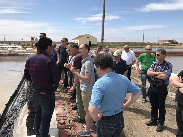 考察團一行先后到淡水養殖基地、日曬制鹽扒鹽現場以及五圖河小麥種植基地進行了實地考察,每到一處,都仔細詢問了生產情況,并詳細記錄了相關數據。在日曬制鹽扒鹽現場,靳主任詳細講解了海水制鹽與礦鹵制鹽生產工藝,以及鹽業生產、銷售、安全等方面政策法規??疾靾F對我公司取得的成績給予肯定,并希望建立長效交流機制,進一步加強雙方的交流合作。