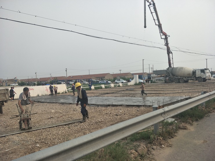 南翼公司自承接中二圩職工文化廣場提檔升級工程以來,積極行動起來,按照序時進度,組織人力物力投入施工中。先后完成了泥土墊層、石子鋪設、挖掘機平整等步驟。時下,已進入施工關鍵程序——水泥地坪澆灌。從27日早上開始,工人們就忙碌起來,用一天的時間將打地坪工作按照工程質量要求順利完成。