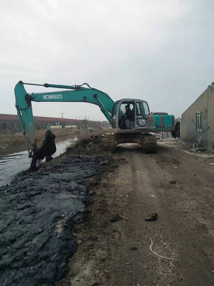 挖機對化工點河道進行治理