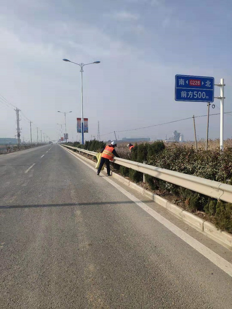 保潔人員在228國道撿拾垃圾