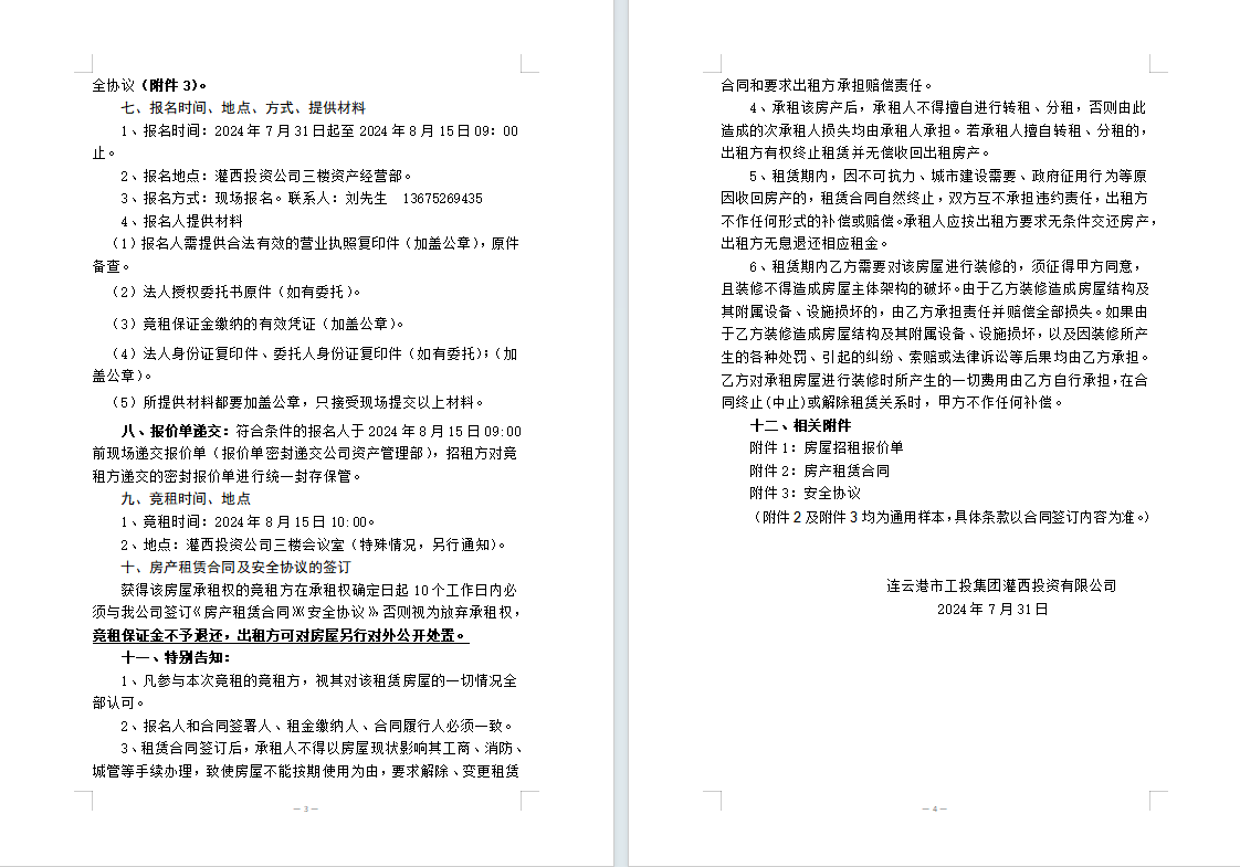 連云港市工投集團灌西投資有限公司位于柴門工業園3號廠房西、324省道東側的房屋公開招租公告