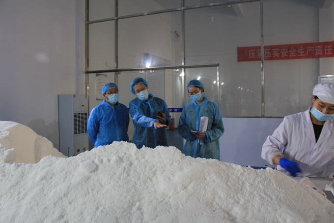 檢查組一行查看了公司相關臺賬資料,實地查看了加工鹽車間、包裝鹽車間、雪花鹽車間、化驗室等;檢查組一行對我公司食品安全管理工作給予肯定,并對下一步隱患排查整改工作提出了意見和建議。