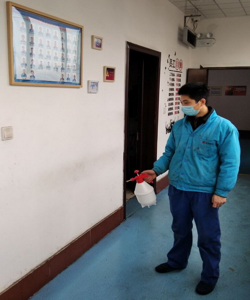 王以知對包裝鹽車間進行噴灑消毒