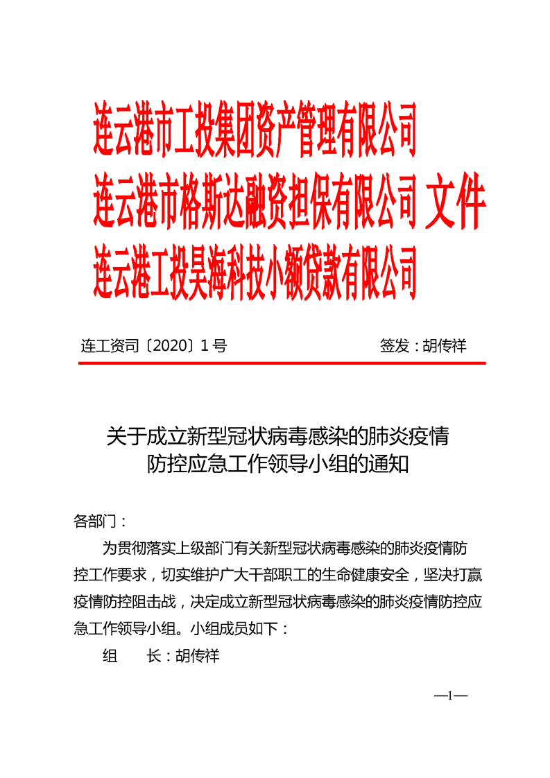 關于成立新型冠狀病毒感染的肺炎疫情防控應急工作領導小組的通知