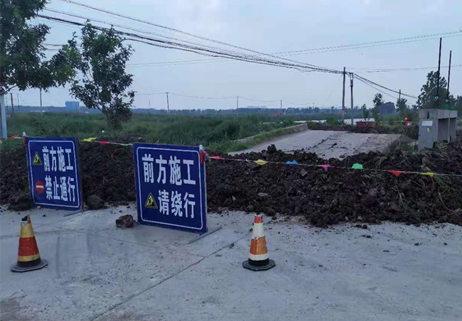 此路段是青口鹽場場內主要道路,由于持續(xù)高溫,橋面拱起、斷裂。到達現(xiàn)場后,公司立即組織人員勘察橋梁情況,封閉了現(xiàn)場交通,及時在公司以及社區(qū)QQ群、微信群發(fā)送繞道通行信息,并設置警示牌,確保夜間交通安全。