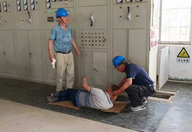 ? ? ? 近日,生產生活服務中心在揚水站班組組織開展了“觸電事故應急演練”活動,中心員工積極參與。演練過程中按照實戰要求,通過情景設計,系統演示了觸電事故發生后事故上報、傷員救治、善后處理等全過程。此次演練的開展進一步促進了中心應急預案體系的完善,增強應急預警、應急響應、應急指揮和應急救援的能力,提高了作業人員的應急處置能力。???(宋世園)