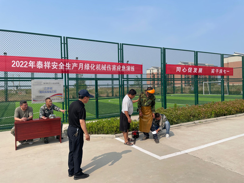 為了有效應對突發事件的處置能力,提高員工安全防范意識。6月22日下午,在泰祥門前小廣場舉行泰祥綠化機械傷害應急演練。
