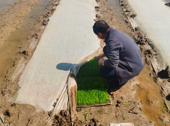 近期,大新農場組織對自營農田機插秧集中檢查,目前秧苗生長正常已達到1.5-2葉秧齡。由于天氣良好溫度持續上升,預計5月下旬即可揭開無紡布進行秧苗管理,6月上旬開始插秧。(劉 楊)
