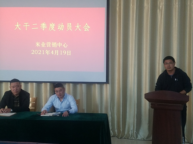 ? ? ? ?4月19日,米業營銷中心召開大干二季度動員大會,進一步貫徹落實投資公司二屆一次職代會暨第二次工代會會議精神,結合“崗位建新功、創效爭一流”大干二季度勞動競賽,規劃部署米業全年工作,分解全年銷售任務,以分解量化的季度指標,以月保季、以季保年,緊扣工作目標,明確責任分工,凝心聚力,共謀發展。