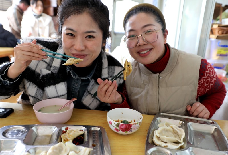 ? ? ? ?活動現場,大家有說有笑,默契配合,有的揉面團、有的拌餃餡、有的搟面皮、有的包餃子,大家互相切磋著包餃子的技巧,好不熱鬧,包出來的餃子也是形態各異,有元寶狀、小船狀、三角狀,還有獨具特色的花邊餃,女職工們紛紛拿著自己的勞動“成果”,擺在手心互相比較著餃子的形狀,隨著一雙雙靈巧的小手來回舞動著,在一片喜慶、溫馨的氛圍中,一個個口味不一的餃子就展現在大家面前。當一盤盤熱氣騰騰的餃子端上桌,食堂瞬間香氣四溢,吃著自己親手包的餃子,每個人的臉上無不洋溢著滿足、幸福的笑容。