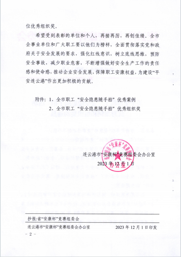 近日,市“安康杯”“安全隱患隨手拍”活動獲獎作品揭曉,公司員工邱菊參賽作品《不出水的洗眼器》獲得一等獎,陳士亮參賽作品《無用的燃氣報警器》獲得二等獎。(神特宣)