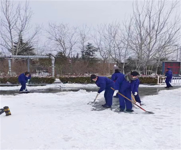 今天剛到公司,大家迅速換上工作服,在分管領導蔣總的帶領下,部門的同事們拿著鐵鍬,掃把等工具來到雪路上,男同志拿著鐵鎬刨,女同志拿鐵鍬鏟、掃把掃,忙忙碌碌干得熱火朝天。經過一個多小時的奮戰,終于清掃了一條方便行人行走的路。