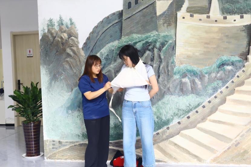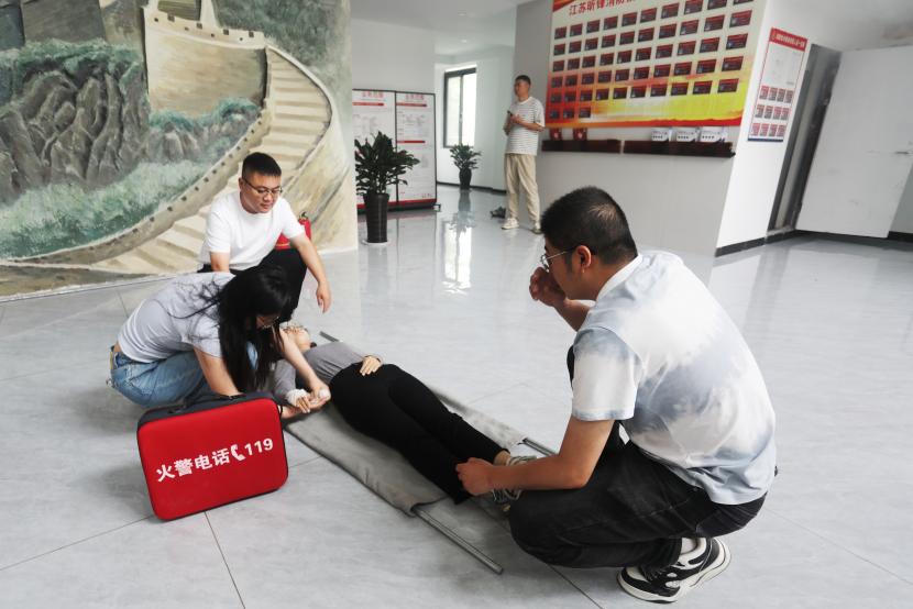 培訓中,連云港德安消防職業培訓學校資深教員王彥結合多年的工作經驗和實際案例,細致地向大家開展了消防理論培訓,結合室內外的消防設施的作用,系統講解了整個建筑消防系統的工作流程,介紹了應急疏散逃生的正確方法步驟;現場教學了消防護具穿戴、自救呼吸器使用;演示了簡易擔架制作、簡易包扎;著重示范了心肺復蘇以及海姆立克急救等。通過生動形象講解,全體員工對消防安全知識有了更全面、更深入了解。