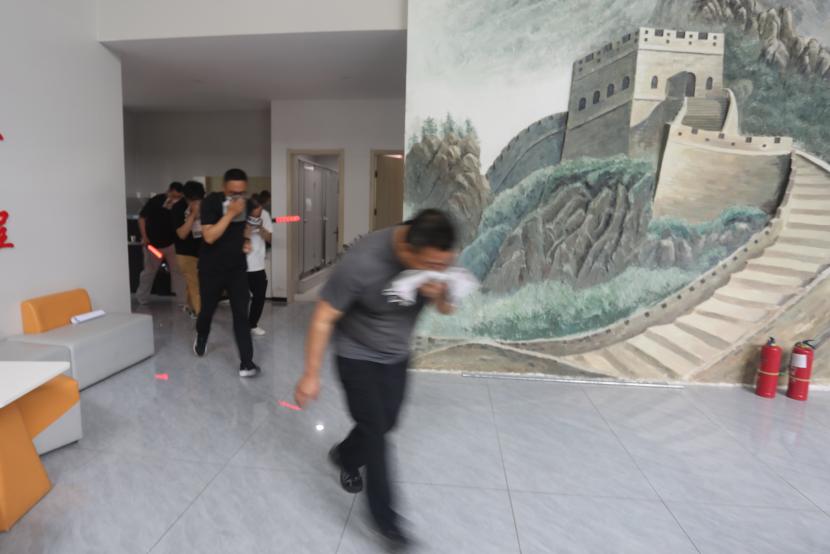 理論培訓結束后,隨即開展了應急疏散演練。公司成立消防應急指揮部,公司黨委書記、董事長王德志作為現場演習總指揮,負責演習現場滅火指揮。滅火行動組、疏散引導組、設備保障組、安全警戒組、醫療救護組、通訊聯絡組、信息宣傳組等專業小組準備就緒,在收到火情報警電話后,第一時間集結各組進行應急任務分配和人員調度啟動應急演練。隨著警報聲響起,辦公樓內全體員工迅速按照預定的疏散路線,捂住口鼻、彎腰低姿,有序地向辦公樓外安全區域疏散。整個疏散過程緊張有序,演練時長控制在2分鐘以內,有效檢驗了公司應急預案的可行性和員工的應急反應能力。