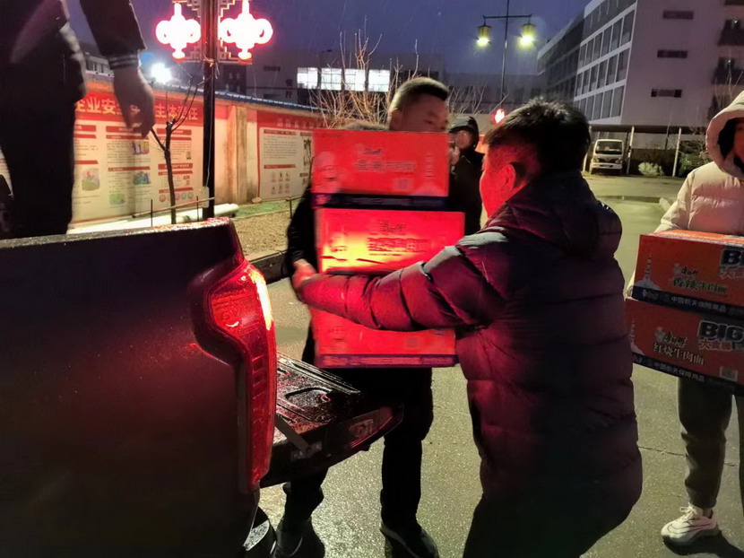 夜間,工會主席傅健一行現場看望慰問清除冰雪戶外工作人員,為他們送上方便面等慰問物資,并囑咐他們在辛勤工作的同時做好防寒保暖、安全防護。為在冰天雪地中堅持工作的一線工人送去了溫暖和關懷。