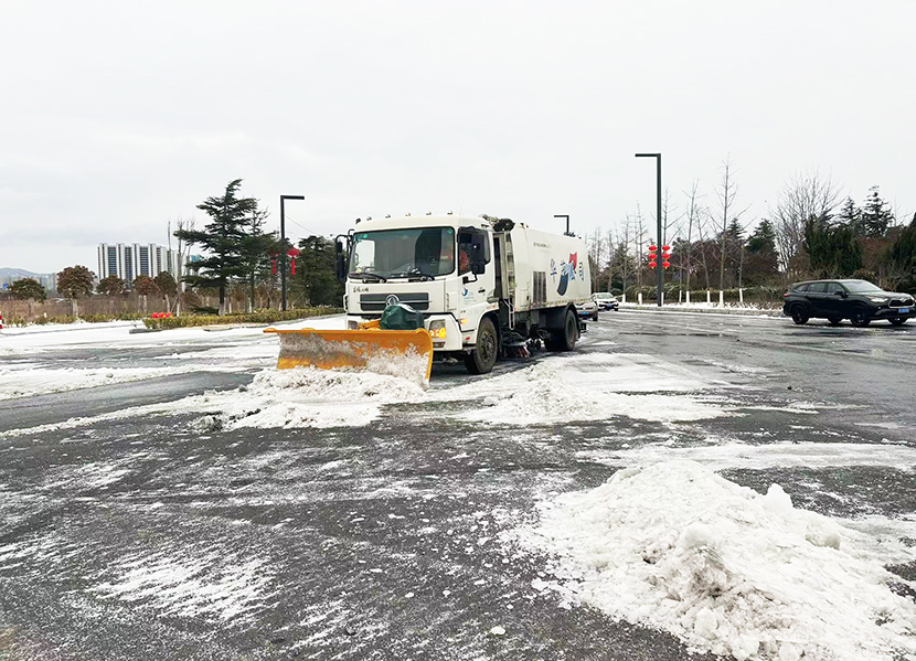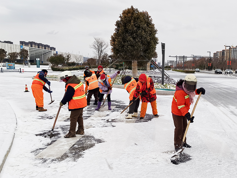 ? ? 受冷空氣影響,1月31日晚,港城突降瑞雪。公司第一時間啟動掃雪除冰應急預案,上下聯動,道路保潔、市政養護、后勤保障等戰線的干部職工全員出動,奮戰在掃雪除冰第一線,突出重點區域、重點路段、橋梁涵洞清掃積雪,保證人們出行方便安全,保障園區交通順暢。
