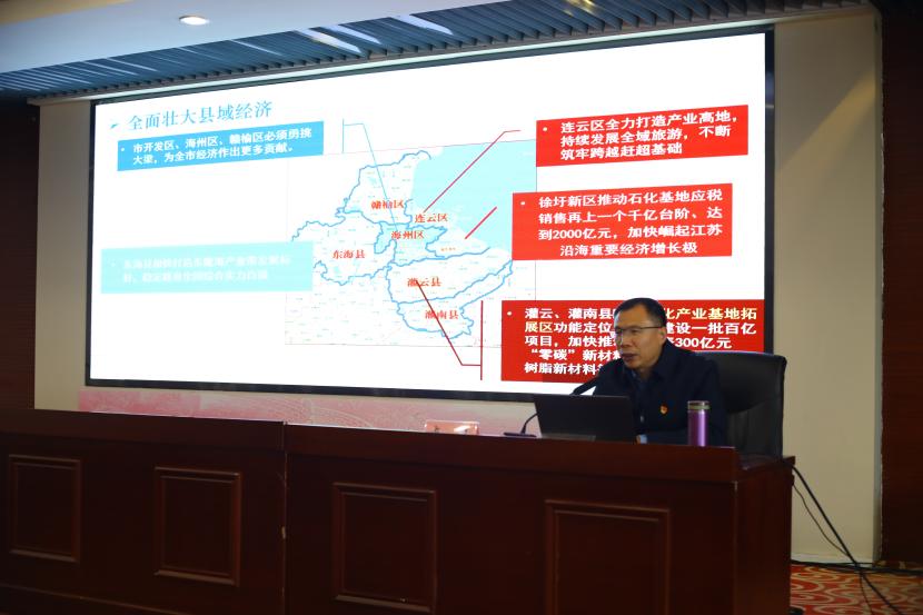 盧山教授緊扣”以“四新”推動連云港高質量發(fā)展新實踐主題,從深刻認識“四個新”的重大意義、準確把握“四個新”的豐富內涵、推進“四個新”的連云港新實踐3個方面,對習近平總書記考察江蘇重要講話重要指示精神做了深入講解,授課內容視野開闊、重點突出、分析透徹,既有理論高度,又有實踐深度,具有很強的思想性、理論性和指導性,為與會學員帶來了一場高質量的理論學習。