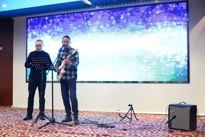 聯歡會節目豐富多彩,有獨唱、小合唱、魔術、游戲等。精彩的表演贏得了全場陣陣歡聲笑語,雖然表演很業余,但大家各個精神抖擻,充分展示了公司員工的蓬勃朝氣和奮發進取的精神。在熱烈氛圍的感染下,公司領導也紛紛上臺表演節目為晚會助興,楊善革《我愛你塞北的雪》對新年的祝福和期盼,表達了迎新年的喜悅心情。公司黨委書記、董事長、總經理王德志一曲《南泥灣》更是唱出了公司全體員工熱愛祖國,熱愛企業,立志艱苦奮斗、自力更生,決戰2022,打贏臺北保衛戰,再創臺北新輝煌的決心。