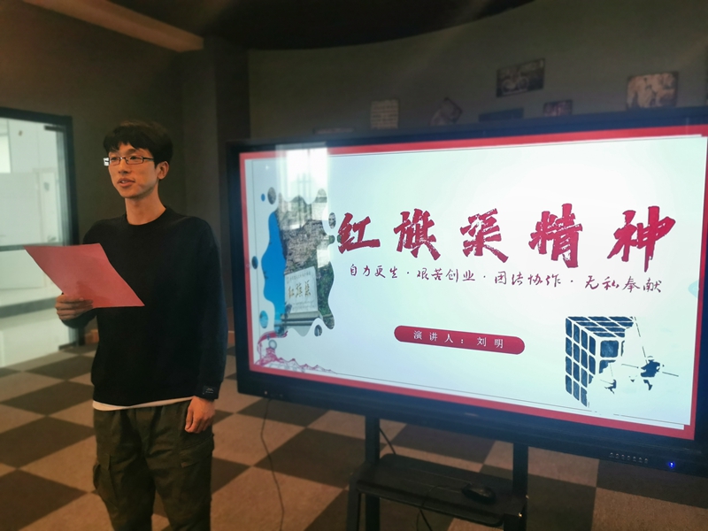 一場演講比賽——“自力更生、艱苦創(chuàng)業(yè)、團(tuán)結(jié)協(xié)作、無私奉獻(xiàn)”,青年職工走上講臺(tái),述說著勤勞勇敢的30萬林州人民,苦戰(zhàn)10個(gè)春秋,僅僅靠著一錘,一鏟,兩只手,在太行山懸崖峭壁上修成了這全長1500公里的紅旗渠的奮斗故事。