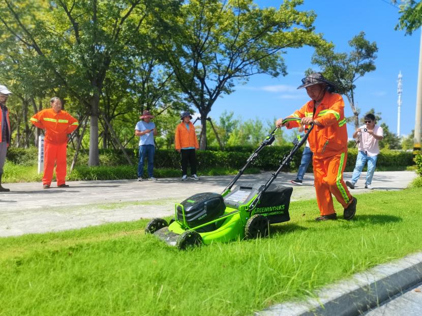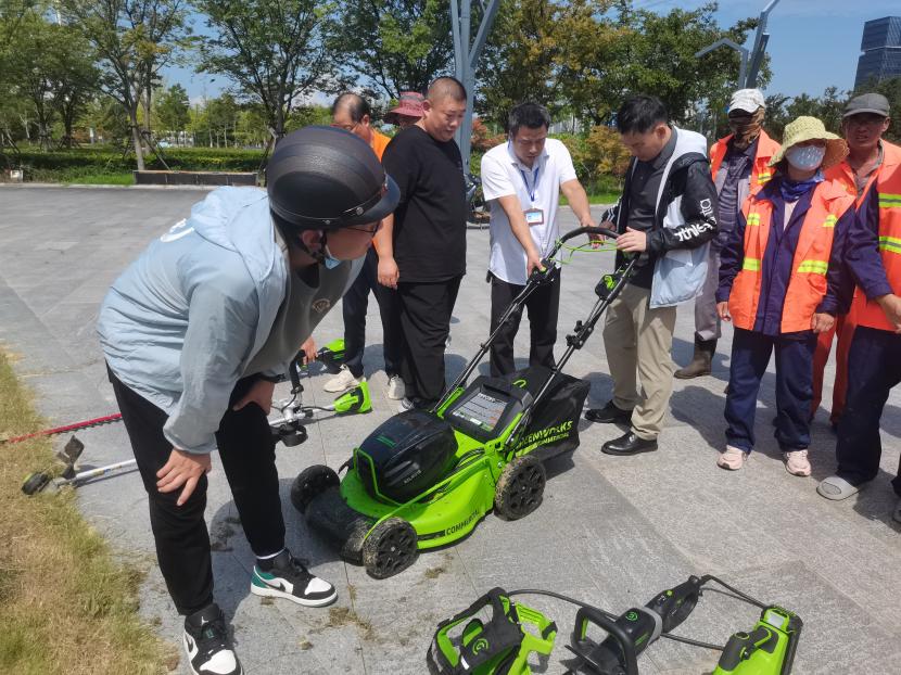 上午9時50分,活動正式拉開帷幕。首先進行的是設備展示環節在工作人員的講解下,了解到這些設備擁有著高效節能、操作簡便、噪音低、輕便等特點。隨后進入的是設備試用階段綠化分公司和益豐園林分公司的專業技術人員輪番上陣,對各類電動機械進行了實地操作和演示。他們熟練地操控著機器,在綠地上留下一道道整齊的線條和一片片平整的草坪。試用過程中,大家紛紛表示,這些新型電動機械不僅提高了工作效率,還大大降低了勞動強度,對于改善工作環境和提升工作質量具有重要意義。
