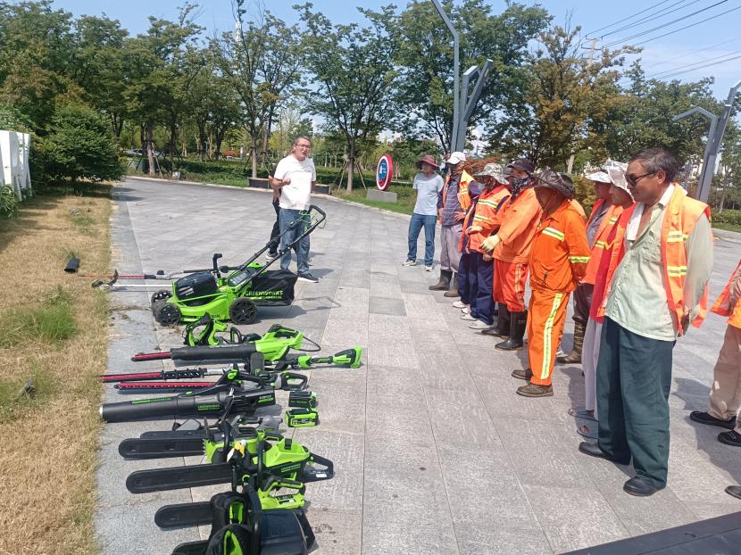 8月16日,創智綠園內綠意盎然、生機勃勃。為積極響應國家環保政策,提升綠化養護效率與質量,綜合管理部精心策劃并組織開展了“綠化新型電動機械展示與試用”活動。本次活動特別邀請了綠化分公司和益豐園林分公司的專業團隊參與,共同見證了電動綠籬機、電動割灌機、電動草坪機、電動鼓風機及電動鏈鋸等先進設備的風采。