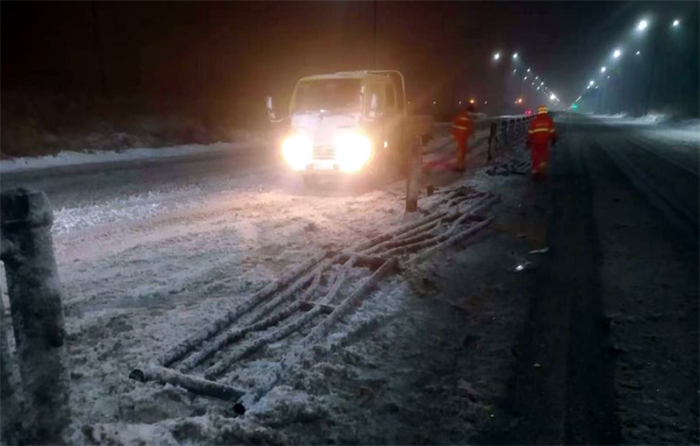 市政分公司根據(jù)公司安排,負(fù)責(zé)融雪劑裝卸工作,從2月3日下午到4日上午,市政分公司累計(jì)裝卸融雪劑已達(dá)150余噸。該分公司在做好保障融雪劑裝卸作業(yè)的同時(shí),抽調(diào)4名精兵強(qiáng)將,處理因大雪導(dǎo)致的道路交通事故應(yīng)急處置4起,應(yīng)急處理道路護(hù)欄11節(jié),約38米,防止交通事故二次發(fā)生。在5日凌晨更是經(jīng)理盧正楊帶領(lǐng)10名黨員先鋒突擊隊(duì),支援重點(diǎn)道路徐新路的融雪劑拋灑作業(yè),僅靠雙手揮著鐵锨,通宵奮戰(zhàn),迎難而上,高質(zhì)高效完成融雪劑拋灑作業(yè)路段。(李濤)