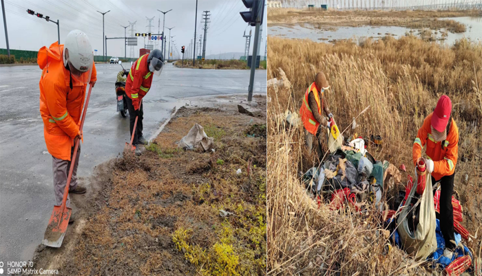 ? ? ? ?突擊處理“一馬當(dāng)先”。該分公司園區(qū)兩個(gè)班組雙休期間,及時(shí)服從徐圩城建活動(dòng)保障路線整改要求,強(qiáng)化蘇海路路面兩側(cè)施工圍檔,石化三路中風(fēng)帶護(hù)欄清洗力度。班組人員兩人一對(duì),三人一組,無(wú)懼徐圩海風(fēng)吹透身體,揮動(dòng)手中拖把清洗圍檔,護(hù)欄長(zhǎng)達(dá)1000多米長(zhǎng),清除車輛拋灑積土20余處,用辛勤勞作汗水踐行勞動(dòng)本色。